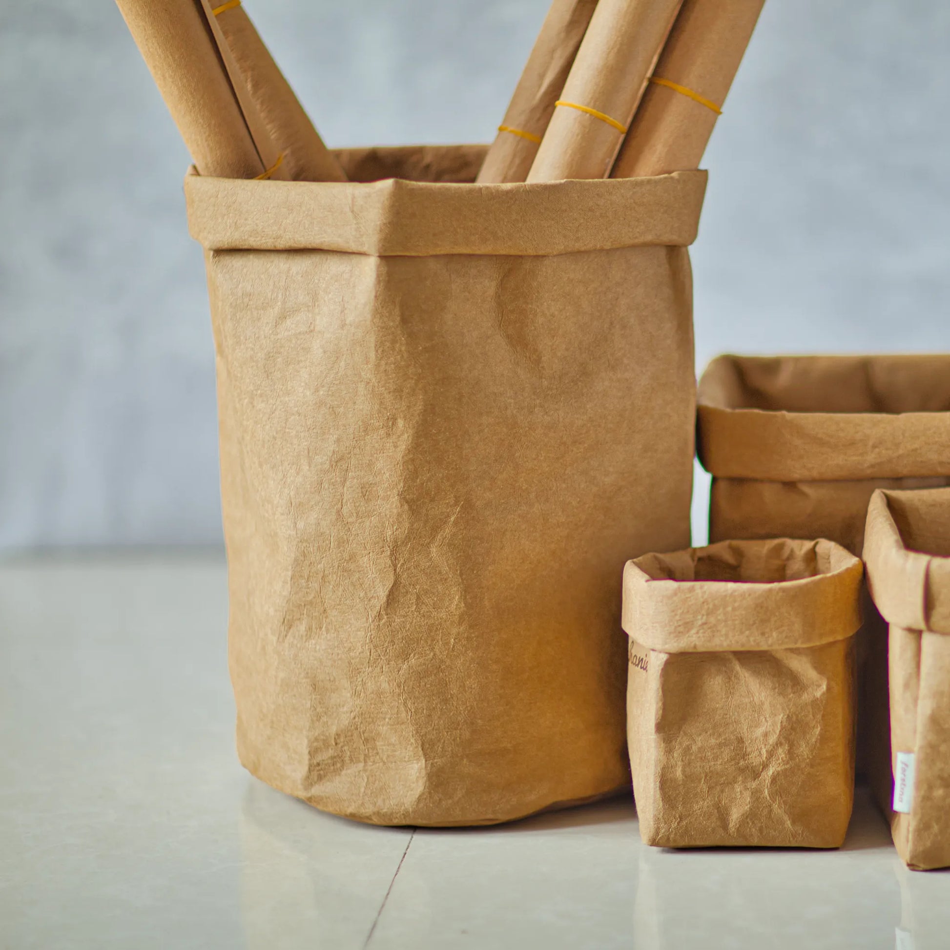 🌱 the paper bag lay flat for easy storing and the height can be rolled up or down to suit the contents